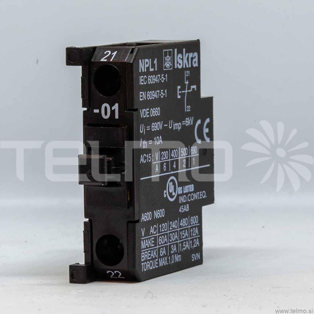 Auxiliary unit NPL1-01, with one normally closed (NC) contact, for contactors Iskra KNL.